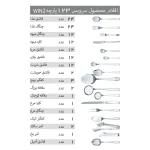قاشق غذاخوری: 24 عدد, چنگال غذاخوری: 24 عدد, کارد میوه‌خوری: 12 عدد, چنگال میوه‌خوری: 12 عدد, قاشق چای خوری: 12 عدد, قاشق شربت خوری: 12 عدد, قاشق مربا خوری: 12 عدد, قاشق خورشت: 2 عدد, قاشق آجیل: 1 عدد, کفگیرکیک: 1 عدد, کفگیر: 3 عدد, ملاقه بزرگ: 2 عدد, ملاقه کوچک: 1 عدد, انبرسالاد: 2 عدد, انبریخ: 1 عدد, کارد مرغ: 1 عدد, چنگال مرغ: 1 عدد