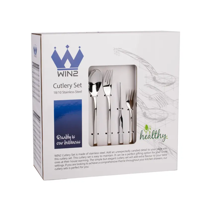 - تعداد اقلام: قاشق غذاخوری: 24 عدد، چنگال غذاخوری: 24عدد،کارد غذا: 12عدد، کارد میوه خوری: 12عدد، چنگال میوه خوری: 12 عدد، قاشق مربا خوری: 12 عدد،قاشق چای خوری: 12عدد، قاشق شربت: 12عدد، قاشق خورشت: 2 عدد، کفگیر: 4 عدد، ملاقه بزرگ: 2 عدد، ملاقه کوچک: 1 عدد، کارد مرغ: 1 عدد،چنگال مرغ: 1 عدد، کفگیر کیک: 1 عدد، قاشق بستنی: 6 عدد، انبر سالاد: 1 عدد، ملاقه سس: 1 عدد، کارد کره: 6 عدد