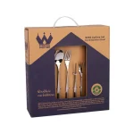 - تعداد اقلام: قاشق غذاخوری: 6 عدد، چنگال غذاخوری: 6 عدد، کارد میوهخوری: 6 عدد، چنگال میوهخوری: 6 عدد، قاشق مربا خوری: 6 عدد، کفگیر: 1 عدد، ملاقه بزرگ: 1 عدد، ملاقه کوچک: 1 عدد